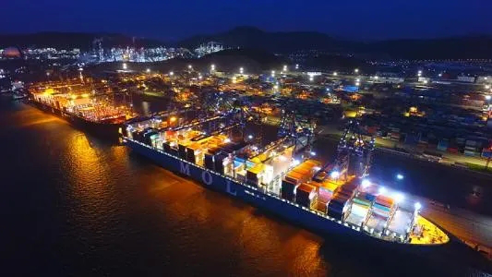 在某國內大型物流港口,無人作業自動引導車車循環往來,超車換道、裝箱卸貨、多車協同等作業流暢鏈接……